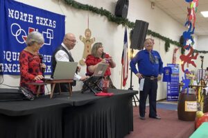 12-7 NORTEX President Vince Matej, Round Up Chair Terri Johnson, Caller Jet Roberts